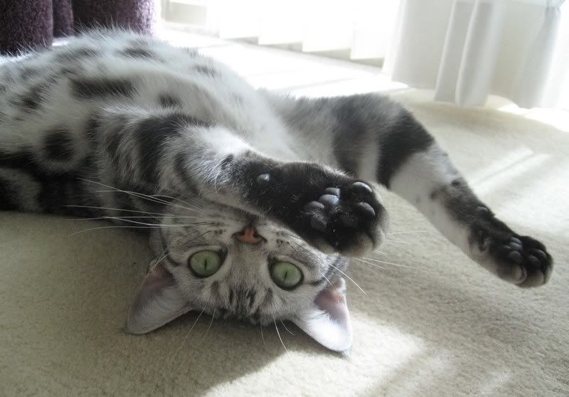 She's silly, though not as much as Buji, but she likes to roll around and make funny little "Prrrt!" sounds.